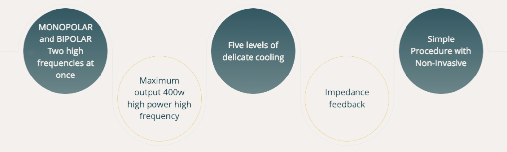 Monopolar RF works deeper to support the underlying structure, while bipolar RF targets the upper layers to improve skin firmness and texture.